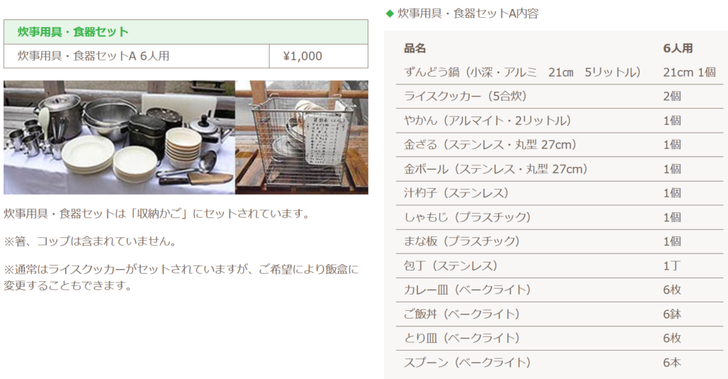 でも、ご安心ください、キャンプ場では、その辺を考慮して、人数分の食器セットは貸出してもらえました。